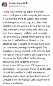 There have been conflicting accounts of the incident. Federal officials stated the agent fired after Good allegedly tried to use her vehicle against officers, while witnesses and local leaders say multiple videos suggest she was attempting to leave and that the use of force may have been excessive.